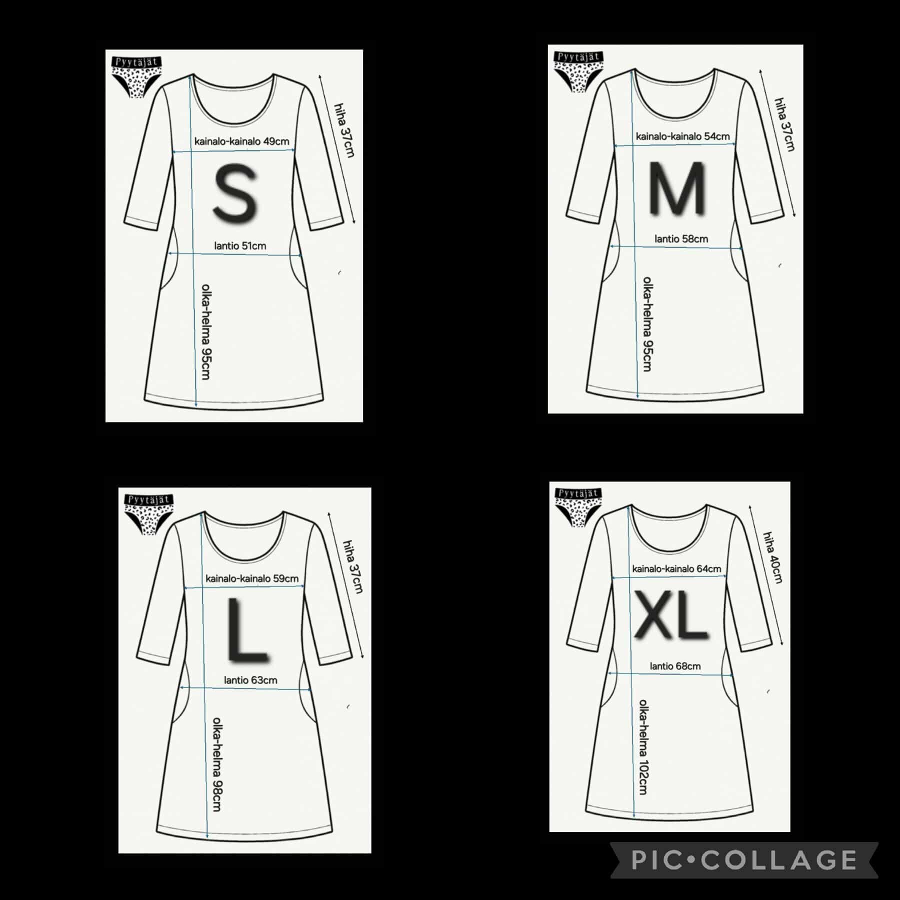Tällä sivulla nähtävissä saatavilla olevat kuosit ja taskumekkojen mitat.